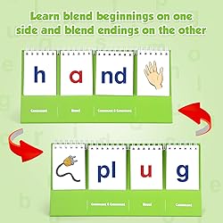 【Educational Toy for Early Childhood Development】 Look at the picture and build the word, then flip the picture card and change one letter to match the picture (band becomes hand). Learning to read and write CVCC & CCVC words improves children's phonemic awareness, reading fluency, and handwriting skills. This phonics flash cards includes building CVCC or CCVC word blends and matching, letter recognition, word association, digraph and spelling 【Reliable & Professional】 Aizweb specializes in children's intellectual product development. We work with special education teachers, brain scientists, and psychologists in the industry to develop unique, multi-sensory educational resources to support teachers and parents, and meet students with different learning styles and needs. These learning & education toys give children more and more confidence in their ability to learn and solve problems 【Learning Through Playing is Fun】 Teach blends using a double sided flip stand, the front side of the flip stand is used to teach CVCC words that end with two-letter consonant blend, and the back is CCVC words that start with two-letter consonant blend. Vowels and consonants are color coded to support learning. Your child will be taught about digraphs as part of their phonics learning journey, like "sh" as in "shop", "ck" as in "sock" 【Safe & Environmental Friendly】 This kindergarten toys is made of paper of waterproof material, non-toxic and safe for children. Spelling cards are easy to use,even in the classroom. The entire product is recyclable and we are committed to protecting the environment. We are inspired by the montessori philosophy that help kids reach their maximum potential in learning, communication, emotion, social skills, and behavior 【Perfect Toy for Kids】 Educational toys is the best toy for boys and girls over 3 years old on birthdays,Christmas, Thanksgiving, back to school, Easter, New Year, Halloween candy bags. Preschool toys must haves, great for both home school and classroom learning games to help kids learn and play in a fun and engaging way.