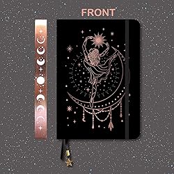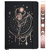 BUKE Medium A5 Hardcover Notebook Dotted Journal - 180Gsm Thick Bamboo Paper - 160 Dot Grid Pages 5x5 MM - Black Color Faux PU Leather Cover - Rose Gold Edge And Moons (A5, Black)