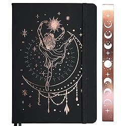 DETAILS AVAILABLE: This Dotted Journal comes with 2 ribbon page markers, and a gusseted pocket on the inside back cover for loose paper storage. Elastic closure makes sure everything stays where you need it. The gift box package has 3 sheets of journal stickers,1 pcs pen loop holder,1 pcs stencil, and a Flannelette shrink bag inside. INKPROOF PAPER: 180gsm thick bamboo paper, the pages are smooth in texture and definitely bright white, this dot grid notebook prevents even dark and wet inks from bleeding through; it is ideal for use with pencil, colored pencil, charcoal, mark-pen, chalk, and ink. they hold up to light watercolor markers use UNLEASH YOUR CREATIVITY: 160 dot-grid pages for you to sketch mental images, portray people, draw landscapes, paint, scribble, color, and more. Good quality dotted journal that lays flat so you can use more of the paper for multiple drawings and renderings. Medium A5 SIZE: Measures approximately 5.75 x 8.25 inches (143*205 mm inner page size) for artist drawing and bullet dotted journal