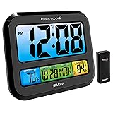 Sharp Atomic Clock with Large Bright Color Display, Atomic Accuracy, Jumbo 3" Easy to Read Numbers - Indoor/Outdoor Temperature Display with Wireless Outdoor Sensor