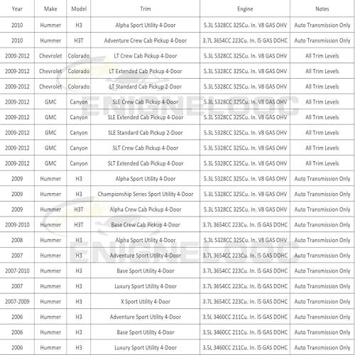 - 【Vehicle Compatibility】This radiator is compatible with Hummer H3 H3T GMC Canyon Chevy Colorado V8 5.3L All Engine 2006 2007 2008 2009 2010 2011 2012 06 07 08 09 10 11 12.