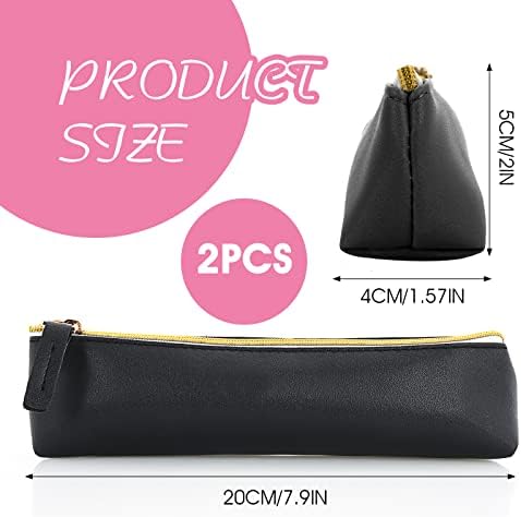 2PCS PU Leather Pencil Case, Marker Pouch Cute Slim Pen Bag Small Pencil Case Zipper Bag Lovely Stationery Portable Cosmetic Pouch for Pen Markers(Black+White)