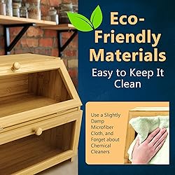Excellent design - the bamboo is oiled and polished with natural soybean oil to protect the wood. You receive a completely food-grade and natural product. Gift with unique features - this wooden bamboo storage box for bread is a great present for a housewarming or hostess gift. It’s also perfect for a young couple in their first apartment or students living in small accommodations. Easy to assemble - So simple to assemble this vintage bread box. Follow the very clear and concise instructions we have included step by step and you’ll have this countertop breadbox ready to use in no time. Sturdy and stylish It’s a good choice to store your bread and baked goods inside this kitchen bread keeper. Made of 100% Bamboo, thicker and stronger than any other available Add to card today: for yourself or for someone you want to treat to something really special. Either way, you’ll love receiving this bread box and it perfectly fits any kitchen