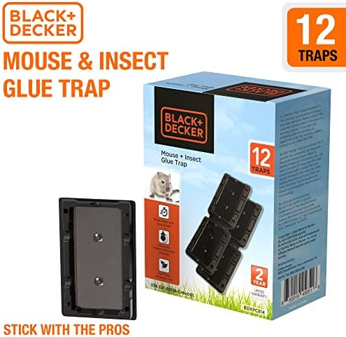 BLACK+DECKER Glue Traps for Mouse & Insect- Heavy- Duty Sticky Traps for Mice, Small Rats, Flies, Cockroaches & Other Bugs- Eco Friendly, Odorless Pest Remover- 12 Pack, Black