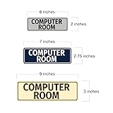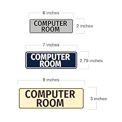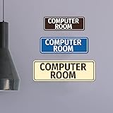 - Our Standard Computer Room Sign can be attached to the door, wall or window of your home or business. The sign text and design work is laser engraved into sturdy plastic. Each sign comes with an adhesive foam backing, allowing them to be attached to any flat surface. Comes in multiple colors. Our room signs are great for your home or business. Small sign is 2"H X 6" W