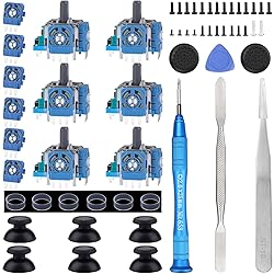 【Compatible model】-- Replacement analog joystick compatible with PS5 Controller Only (NOT FIT for PS4 Xbox One Xbox One S/X Controller). 【What you get】Package include -- 6 x Joystick, 6 x 2K3 Ohm Potentiometer, 6 x Thumbstick Cap, 6 x Protective Ring, 2 x Thumbstick Grip, 27 x Screw, 1 x Metal Cross Screwdriver, 1 x Metal Tweezer, 1 x Metal Pry tool, 1 x Pry bar. (You also need a soldering tool which isn‘t included in the kit.) 【6 × 3D Analog Joystick】-- Ikpek joysticks replacement's model number is EL6 for PS5 Controller, and the Potentiometer is 2.3K ohm. Repair your worn-out, damaged, drift, blind spots, dead spots, can't center analog joystick . Quality Guarantee -- The joystick replacement was test before shipment. And it is made of high quality metal, ABS plastic material. Make it has longer working life and used more accurately. 【6 x 2K3 Ohm Potentiometer】Design for PS5 controller -- Solve Most Joystick Problem: Stick drift, stuttering, dead zones, creeping, blind spots, non centered. 【6 × Thumbstick Cap + 27 x Screw for PS5 Controller + 6 x Protective Ring】Thumbstick Caps -- Made of premium ABS material, enduring and practical. Ideal replacement for your broken or cracked controller thumbsticks. Screws -- Replacement of screws can better help you repair the controller. Protective Ring -- 0.1 Ultra-thin protective ring compatible with PS5, PS4, Switch, Xbox controller,it will protect controllers from wear and tear, avoid powder, extend the life of controller.