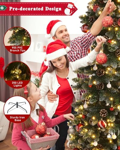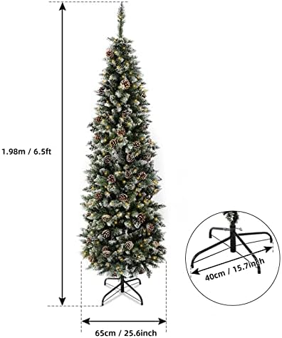 AORESAC 6.5ft Árbol de Navidad Pre-Iluminado en Forma de Lápiz para Hogar, Oficina, Decoración de Fiesta, Diseño de Nieve Artificial con 350 Luces LED y 699 Puntas de Rama de PVC y Piñas, Bisagras Metálicas y Base