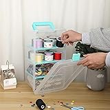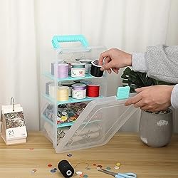 - BTSKY Multifunctional Portable Plastic Storage Box & Carry Box, Keeps Your Items in Order. An Ideal Choice For Sewing Supplies, Craft Storage And More. Charming Points ➤High-quality Material----The storage box is selected by premium PP material, which is non-toxic and odorless. It is durable and resistant to wear and tear. ➤Transparent Vision----The clear storage box allows you to see what you are looking for at a glance, which saves both time and effort. ➤Adjustable Inserts----The divided storage box designed with 4 deep compartments, can accommodate different items, make you easily and efficiently classify and store your items. Versatile Usage: ❣Stationery Storage Box----for storing pens, books, notebooks, staplers, etc. ❣Cosmetic Organizer----for storing brushes, lipsticks, makeup pads, skin care products, etc. ❣Sewing Supplies Case----for storing sewing thread, scissors, beads, buttons and other small accessories. ❣Art Craft Supply Organizer----for storing pencils, Markers, planners, Washi tapes, cards, stickers and more. More Details: ➤Sturdy Handle-----Humanized design handle, comfortable grip, easy to carry. ➤Press Type Buckle-----Safety buckle, keep items in one place, easy to open and close. ➤Removable Insert-----The movable partition can be used to store large items, or adjust the position flexibly as required. Specification: Color: Clear and Blue Material: PP Plastic Size: 13.9x7.9x6.2 inches/ 35.2x20x15.8 cm(LxWxH) Usage: Stationery Box, First Aid Kit, Sewing Box, Craft Supply Organizer Package Included: 1X Clear Plastic Storage Box with 4 Deep Compartments Warm Tips: - Please allow 2-5mm error due to manual measurement. - Please check the size carefully before purchase to see if it meets your needs.