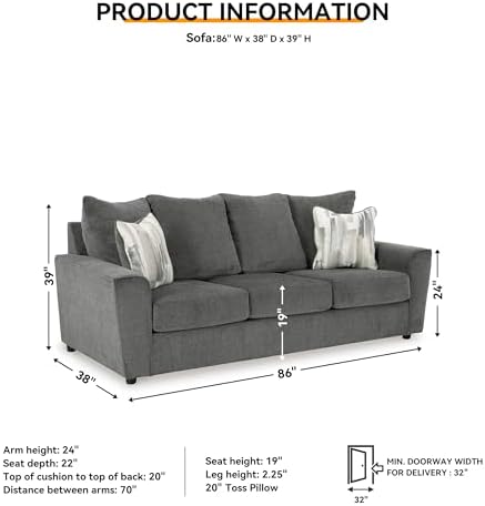 - COMFY SEATING: Pair this sofa with chairs or a loveseat to create a modern seating area. Measures 86" W x 38" D x 39" H. Seat height: 19". Seat depth: 22". Arm height: 24"