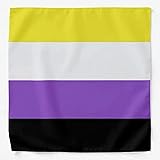 - The design features the colors of the Non Binary pride flag: yellow, white, purple and black, representing genders outside the gender binary. The bandana is made of a breathable and lightweight Cotton/Poly blend.