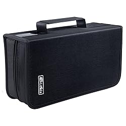 - Siveit High Quality Black 128 Big Capacity CD/DVD Case Wallet This CD case does its job very well. Moisture and strong Nylon case design is durable enough to store it anywhere without worrying about your CDs being crushed and scrached. 1.CD CASE SIZE:11.2*6.3*4.3 inch 2.Provides Maximum Protection from Dust, Scratches and other Disk Damage. 3.Organizer holds 128 CDs,The already pulled out tabs make it easy for you to slide your discs right into the pockets. 4.Transparent Sleeves for Improved Media Organization. 5.Total: 1x Black 128 Large Capacity CD/DVD Case Wallet Binder ATTENTION: We have upgraded our CD Bags, it holds around 128 CDs, and the zipper can be closed easily and perfectly