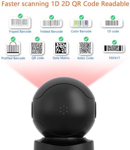 - ➤【Automatic Smart Sensing Scanning】Specially equipped induction trigger, the desktop barcode scanner support auto-sensing scanning, barcode recognition more intelligent. When you not use the barcode scanner for a while, it will be into a sleeping mode. When handsfree barcode scanner in sleeping mode, it will automatically be activated once the item moving, and read the barcode under the window to upload to your device.