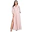 Women's V-Neck Bridesmaid Dresses with Long Sleeves Split Pleats Chiffon Formal Evening Party Dress for Wedding VT001