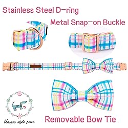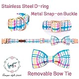 Unique style paws Easter Day Dog Collar with Bow Tie Blue Pink Grid Puppy Collar for Small Medium Large Boys Girls-S