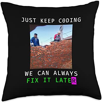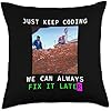 Funny Programmer Just Keep Coding We Can Always Fix It Later Throw Pillow