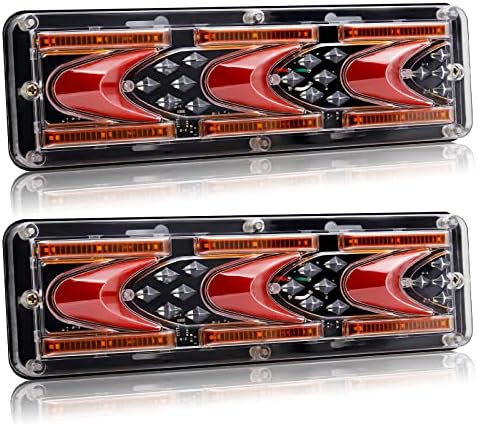 LED Trailer Tail Lights, Truck Tail Light, Sequential Flowing Tail Light, 24V Turn Signal Parking Reverse Brake Running lights modes five-in-one. for Truck Trailer Boat Pickup RV, 2Pcs