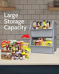 Skywin Plastic Stackable Storage Bins for Pantry - 2 Pack Stackable Bins For Organizing Food, Kitchen, and Bathroom Essentials (Light Grey)