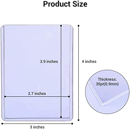 - Quantity & Size: 100 pieces of 3 x 4 inches ultra clear toploaders, which are designed to safely store standard size cards (2-1/2" x 3-1/2") up to 35 points in thickness.