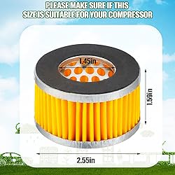 Package Content: you will receive 8 air compressor filter elements with the size about outer diameter 2.55 inches/ 6.4 cm, inner diameter 1.45 inches/ 3.7 cm, Height 1.59 inches/ 4.0 cm, there are enough quantities to meet your daily use needs and replacement requirements Heavy Duty Paper Material: the air compressor intake paper filter element is made of quality heavy duty paper material with metal cladding to filter airborne particles, reduce cylinder and piston wear and can be applied on noisy equipment such as blowers, air compressors, boilers, exhaust ports, generators, pumps and exhaust ports Nice Filter Function: the air compressor air filter can help to cut off dust and moisture, reduce working noise, and increase the function of the air filter; Besides, the proper sizes of air compressor filter elements are suitable for the most common compressor (medium to large compressor), and its working principle is the same as that of the original filter Stable and Serviceable: the yellow air compressor parts offer consistent and nice performance for replacing old or broken piston air compressor filters, replacement air compressor filter element adopts quality materials which can serve you for a long time Easy to Use: the central pneumatic compressor parts adopt a practical design, it is easy to use and install, the proper sizes are also convenient to carry out to meet some outdoor work needs, which do not take up too much space in your toolbox, they are suitable for craftsmen, porters cables and air compressor models