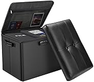 Fireproof and Water-resistant(17"X13"X13"): Compared with other storage ottoman, our fireproof storage ottoman is made of 3 layered non-itchy silicone coated fiberglass which stands up the temperature up to 2000℉. The Storage Chest is fireproof and waterproof,which can effectively protect your important files in a fire and wet weather. They will further keep your files intact. It has been passed by SGS TEST(UL94 Certified) for a longer life and can be used with peace of mind. Leather and dust-proof material: Compared with other storage ottoman, The seat part of our stool is made of waterproof PVC leather. It is worth mentioning that our storage ottoman can hold up to 440 lbs. The sturdy fixing plates and the high quality fibreboard give it a better load-bearing capacity and will not warp, so you can sit or stand safely on the stool. And the dust-proof material we use prevents dust or hair from sticking to the outside of our stool, always keep it neat and tidy. Multipurpose Stool: Our fireproof ottoman stool is equipped with sturdy handles to make it easier to move even when it is fully loaded. High quality combination lock design for added storage security. We have also added a zip and cover to the top to make this stool's hidden storage space more private. It can be both a stool and a safe fireproof storage box, which is how we designed this product in the first place. Nothing is completely foolproof, but added protection is always a good idea. 47L Hidden Storage Space: Reduce the clutter in your home by storing electronic product,blankets,books or even for storing some valuable files,cash,Certificates. It's fun to keep valuables in a conspicuous bench with hidden space(mesh pocket on the lid for storing files).Fireproof storage ottoman can be used as a safe stroage box,coffee table,small seat,chair stool,bed footstool,climbing tool,perfect for study, bedroom, living room, student dormitory, RV,leg rest,living room storage, field Trusted After Sales Service: Easily folded up when not in use.For the file&money, this is a great alternative to a heavy fireproof safe that would be very difficult to move in case of a true emergency. This is one you could pick up and toss in your car/truck as you leave the premises.Our ottoman is so lightweight that in the event of a disaster you can just grab it and go.If there any quality problem,please feel free to let us know.We promise to arrange a REPLACEMENT or 100% REFUND immediately.