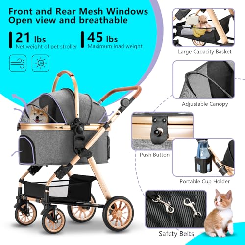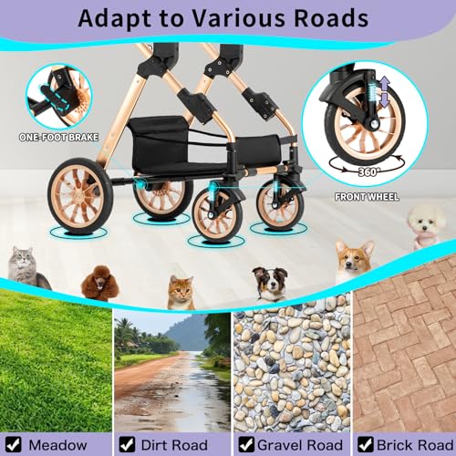 - 【All-round Consideration Functions】 The aircraft grade aluminum structure is corrosion-resistant,wear-resistant and scratch-resistant.This high-level pet stroller uses the same material as the baby stroller and achieves light weight with full functions.It’s suitable for young or old pets and medium-sized.You can free from the worry of dirty hair or pets getting sick in extreme weather such as dust, rain and snow, too hot weather etc.
