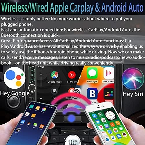 Doble Din Autoestéreo de Coche con Apple Carplay Inalámbrico, Android Auto Inalámbrico, Radio de Coche de Pantalla Táctil HD de 7 Pulgadas con Bluetooth, Receptor de Audio de Coche con Cámara de Reversa, Mirror Link, FM/USB/AUX/TF/Subwoofer
