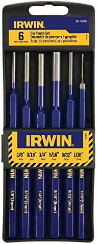 Drive or remove pins with ease with the IRWIN Pin Punch Set, 6 pc. (IRHT82531). One-piece construction forged from hardened and tempered tool steel helps add strength and durability, while a powder coating helps increase visibility so you can find the piece you need and get right to work. This set includes 1/16 in., 5/32 in., 5/16 in., 1/4 in., 3/16 in., and 1/8 in. pin punches.
