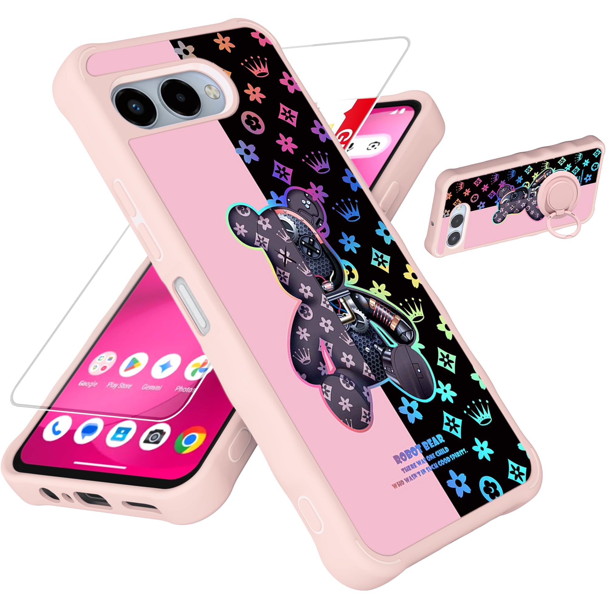 jioeuinly BLU C5L Max Case Compatible with BLU C5L Max Phone Case Cover [with Tempered Glass Screen Protector][Hard PC + Soft Silicone][Ring Support] [Colorful Reflect Light] IMDF-JXX