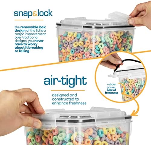• SOLID AIRTIGHT SEAL: The silicone gasket on the lids and the 4 sided locking hinges create a full airtight seal ensuring that no air or water seeps in, keeping your food to its maximum freshness. No need for the old clips on the bags, with these canisters you will have a true pantry dream.