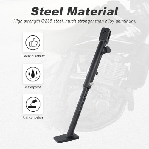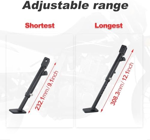 - Adjustable Length: It can go from stock to height to approximately 2" (5.08 cm) Lower. And it can also be extended approximately 1" (2.54 cm) longer than the OEM kickstand.