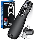 【PRESENTATION CLICKER】Presentation pointer supports Volume Control, Switch Windows, Full/Black Screen, Page Up/Down. One button is one function, The contoured keys are located in just the right place and easy to find by touch. So your show goes smoothly, even in the darkest room 【USB Type C PRESENTATION CLICKER】The presenter clicker comes with a unique dual-head design, USB & TYPE-C can meet all your need. You can smoothly switch between different port devices such as Mac, laoptop and pc, one for multiple computers. At the bottom of the slide clicker there is a magnet which can hold your USB dongle securely. (Powered by 2pcs AAA Battery are not included) 【BRIGHT RED LIGHT】Wireless clicker for PowerPoint presentations, easy to see against most any background, can be used to highlight key parts of a presentation, then you can be sure they won't miss the point 【EASY TO USE】Plug the 2.4 GHz receiver into your computer's USB port and you're ready to start the show. You needn't have to set up anything and no software to install. The clicker for powerpoint presentation is suitable for all ages, when your presentation is over, simply store the receiver inside the presenter 【LONG CONTROL RANGE OF THE CLICKER】With this pointer presenter remote, you can come out from behind the computer or podium and connect with your audience smoothly. The powerpoint clicker also has a wireless control range of up to 100 feet, so you can make your lectures more interactive rather than just talking to your students from standing at your desk clicking buttons