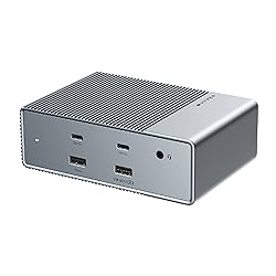 TRIPLE EXTENDED DISPLAY - Easily connect up to 3 external displays with the flexibility of 2 HDMI and 2 DP ports. This USB-C docking station connects with 2 HDMI ports or 2 DisplayPorts that can be used interchangeably. Up to 3 Extended Displays are supported on Windows and Chrome OS only as MST (Multi-Stream Transport) is required. HIGH-SPEED USB - Enjoy blazing-fast connectivity with 10 Gbps USB-A and USB-C, this USB 3.2 docking station performs 2X faster than our 1st generation hubs. Quickly charge a high-capacity laptop battery with 100W USB-C power charging delivery. FAST AND RELIABLE GIGABIT ETHERNET - Get the most reliable and fastest internet connection for work, play, and video conferencing with our MacBook docking station. Setup is easy with driverless plug & play capability, allowing for easy installation and deployment. PRO-GRADE DIGITAL AUDIO - Capture and listen to the best sound quality possible with digital coaxial and optical fiber TOSLINK input and output. Our laptop dock station is designed to bring out the best in your audio and HDMI accessories. HYPER INNOVATION - HYPER creates award-winning, cutting-edge IT and mobile accessories that focus on compatibility with Apple, portable power, and connectivity.