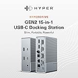 HyperDrive USB-C & Thunderbolt 4 GEN2 15-in-1 Docking Station for MacBook, iPad, PC - HDMI or DP, Up to 3 Extended Displays, High-Speed USB Data Transfer