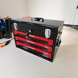 Tool Set and Mechanic Tool Set Box with Handle and 3-Drawer Heavy Duty Metal Box - 339 Piece Tool Kits for Adults Mechanics Workshop Maintenance and Repair Projects - Red