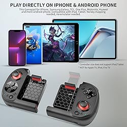 🎮🎮【PLAY DIRECTLY ON IPHONE/ANDROID PHONES】This phone game controller for iPhone and android phone. Compatible with iPhone 14/14 Plus/14 Pro/14 Pro Max/iPhone 13/13 mini/13 Pro/13 Pro Max/12/12 mini/12 Pro/12 Pro Max/11/11 Pro/11 Pro Max/X/XR/XS/XS Max/8/8 Plus/7/7 Plus/6S/6S Plus; Samsung Galaxy S22 Ultra/ S22+/S22/S21 Ultra/S21+/S21/S20 Ultra/S20+/S20/S10/S10+/S10/S9+/S9/S8+/S8/Galaxy Note/One Plus/TCL/Motorol/Huawei/Oppo and more. (NOT for Apple TV/iPod/Fire TV) 🎮🎮【MAGNETIC STORAGE - PORTABLE GAMEPAD】The arVin mobile game controller using the left handle / right handle separation design fuses 2 handles into a convenient, compact shape via magnetic suction. You can carry the portable controller in your pocket, bag or travel with you, the mini compact controller will not take up extra space, allowing you to play controller games anywhere, anytime. 🎮🎮【COMPATIBLE WITH MOST CONTROLLER GAMES】This Bluetooth gamepad for Android/iOS supports most controller games downloaded on App Store/Google Play, such as Call of Duty Mobile (COD), Genshin Impact, Diablo Immortal, Combat Modern 5, Asphalt 8: Airborne & Asphalt 9 Legends etc. (For iOS not for PUBG; Android not for Genshin Impact & PUGB) 🎮🎮【WIRELESS CONNECTION】Wireless gamepad controller for iphone/Android does not need emulator, no key mapping, just connect to Bluetooth and you can play. Using wireless Bluetooth 4.2, wireless range up to 32.8 feet. Low latency. 🎮🎮【LONG PLAYING TIME】 The game controller joystick for iPhone/Android has a built-in rechargeable 400mAh battery that can bring more than 15 hours of play time when fully charged (NOTE: 2 handles need to be charged separately, the package only contains a charging cable, if you want to charge 2 handles at the same time, please purchase an additional type c charging cable.) 🎁🎁【WHAT YOU GET?】1x Wireless controller for Android/ iOS, 1x charging cable, 1x user manual, and friendly customer service. If you have any questions, please feel free to contact us.