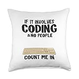 Coding Geeks & Nerd Computer Science Gifts For Men If It Involves Coding & No People Count Me in Programmer Throw Pillow, 18x18, Multicolor