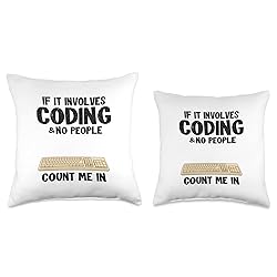 Coding Geeks & Nerd Computer Science Gifts For Men If It Involves Coding & No People Count Me in Programmer Throw Pillow, 16x16, Multicolor
