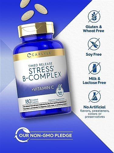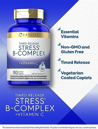 Carlyle Stress B-Complex Vitamin | 180 Vegetarian Caplets | with Vitamin C | Non-GMO & Gluten Free Supplement