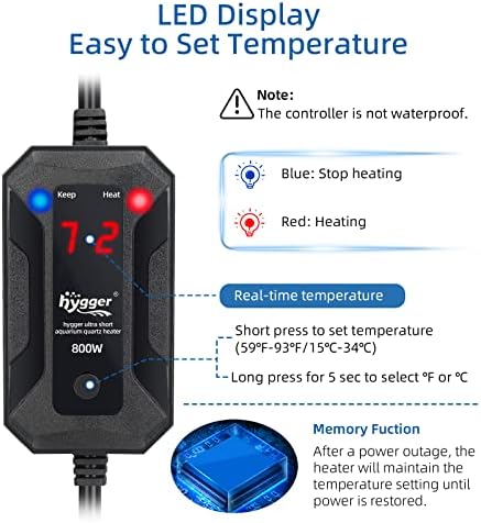 - 【External Smart HD Controller】External controller with LED digital display, without getting hands wet. Each press of the submersible heater will change the set temperature by 1℉(1℃). Press and hold it for 5 seconds to toggle between Celsius and Fahrenheit.