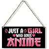 Funny Just a Girl Who Loves Anime Wood Sign Rustic Anime Lovers Wooden Hanging Plaque for Home Living Room Girl Bedroom Wall Art Decoration 6 x 12 Inches Present