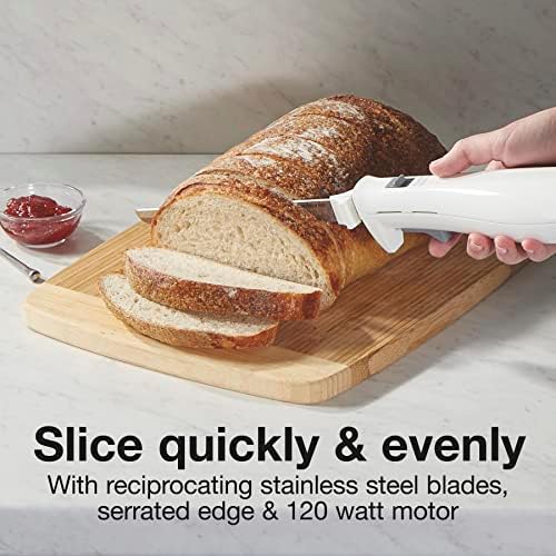 - SLICE QUICKLY & EVENLY: The powerful 120 watt motor and reciprocating stainless steel blades with serrated edge on this electric carving knife for meat and turkey give you the precision and control to cut quickly and evenly every time you slice.