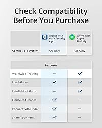 Works with Apple Find My: Just use the pre-installed Find My app and add SmartTrack Link to the Items tab. You can then locate it anywhere in the world using Apple's network of millions of devices. Note: Apple Find My features only work if used with an iOS, iPadOS, or macOS device. Find Your Phone in Silent Mode: Avoid tearing up your apartment searching for your phone. With just a double tap, your phone rings—even in silent mode. Free Left-Behind Alerts: Avoid losing your belongings in the first place with instant left-behind alerts via the eufy Security app—with no added fee. Always Linked to Your Item: If something's lost, you're always connected via Link's QR code. A person who finds your item can scan and see only the contact information you share. Share with Friends and Family: With the eufy Security app you can let others know the location of your items too. You Can't Miss the Alarm: Link sounds an alarm so loud, you can hear it if it's covered or in the next room. Water Resistant with a Replaceable CR2032 Battery: Link is safe—even if it's left in the rain—with its water-resistant coating. And it comes with a replaceable battery that lasts up to a year.