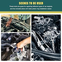 【Purpose】 Mainly used to install piston rings in compression cylinders. Fine tooth lock supports you in compressing bands in small engine increments. It is an indispensable tool for mechanics, tractors, cars, trucks, racing cars, and diesel engines. 【Package Includes】: You'll receive a piston ring compressor set including 2pcs piston ring pliers and 13pcs piston rings. These tools are good helper for repairing different types of car engine, the pliers included will make piston rings' installation more easily. For easy to carry, we also provided a case for storing piston ring compression tool set. 【High Quality】 The piston ring set is made of manganese steel and iron, high quality and durable. The fine-tooth ratchet pliers can be used flexibly and can be parallel or perpendicular to the cylinder block for precise compression, saving time and effort. 【13Pcs Piston Rings】: 13 sizes of piston rings are provided in this set: 62-65mm, 75mm, 80mm, 85-86-88mm, 90-92-95mm, 100-102mm, 105-106-108mm, 110mm, 113-114mm, 120-123mm, 125-126mm, 135-137mm, 140-142-145mm, which can be applied to different types of motors, you can check your car type information and select suitable size from them. 【Fine-Tooth Design】: The pliers of piston ring compressor tools with fine-tooth design can compress piston rings in small engine increments, can be applied to almost all situations.