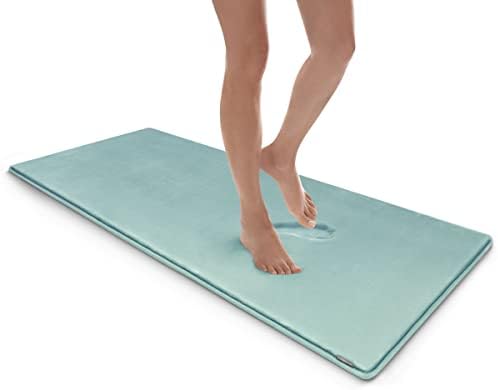MICRODRY SoftLux Solid Bath Mat for Bathroom, Extra Thick Memory Foam Bathroom Rugs with GripTex Skid-Resistant Base, Charcoal Infused Absorbent Bath Mat, 24x58, Runner, Aqua