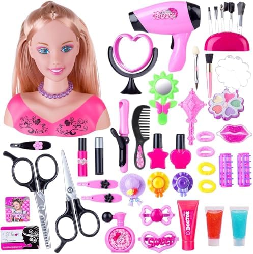 "Kids Doll Head for Hair Styling and Make Up for Little Girls,Head Styling Doll with Hair for Kids Makeup Practice, Hair Styling Doll Makeup Toys for Kids with Hair Dryer, Accessories"
