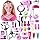 - "Set Including-Doll with hair, make up set and accessories, such as the comb, hair dryer, mirrors, makeup brushes, lipstick and and more as the image displayed."