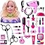 Kids Doll Head for Hair Styling and Make Up for Girls, Head Styling Doll with Hair Makeup Practice, Hair Styling Toys with Hair Dryer, Accessories (Pink)