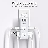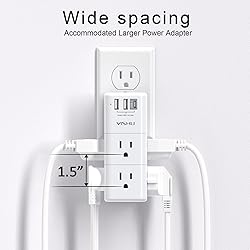 【Portable outlet plug adapter】: 6 AC Outlet Splitter (3 side) with built-in surge protector (900 Joules) and 3USB charging ports (total output DC 5V/3.4A), 90 degree rotating AC plug. LED grounded indicator light shows it's safe to use. 【Multi Plug Outlet】: Unique 3 Side Design Power Strip with 6 AC Outlets, Use 3 large adapters or 6 standard plugs. the rotating AC plug can turn left and right 90 degrees conveniently, use anywhere needed. Best Ideal stocking stuffers for adults 【Smart Charge USB A&C Ports】: 2USB A Charging Ports and 1USB C Charging Port (total output DC 5V/3.4A), Each USB A port features 5V/2.4A Max output. USB C charging port features 5V/3A MAX. Built in smart technology, detecting charging devices and deliver optimal charging speed automatically, compatible with Kindle and most USB devices. NOTE: The UCB-C port is not Quick Charger 3.0, doesn't support any other devices which need 9~22V charging voltage. 【Surge Protector Outlets】: The multi plug outlet provide surge protector against electrical spikes. Three complementary Surge Protection Circuits, TVS(transient voltage suppressor) MOV(metal oxide varistor) GDT(gas discharge tube), with response speed less than 1Ns, and minimum energy-absorbing capacity of 900 Joules, its response time is much shorter than the traditional MOV surge protector circuit, It truly provides great protection of your precious plugged-in devices. 【Safety Guaranteed & After-Sale Service】: ETL Certified,Our friendly and reliable customer service will respond to you within 24 hours. You can purchase with confidence, with our 30-day return and 12-month warranty.