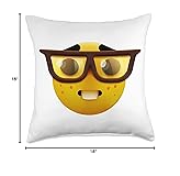 100% Polyester Geek Culture design. Nerd Face meme 100% spun-polyester fabric Double-sided print Filled with 100% polyester and sewn closed Individually cut and sewn by hand Spot clean/dry clean only