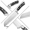 - Professional Santoku Knife: The 7" santoku knife is made of german high carbon stainless steel that resists corrosion and rust, easy to maintain.The indentations on the blade prevent food from sticking, allowing for fast and efficient cutting.